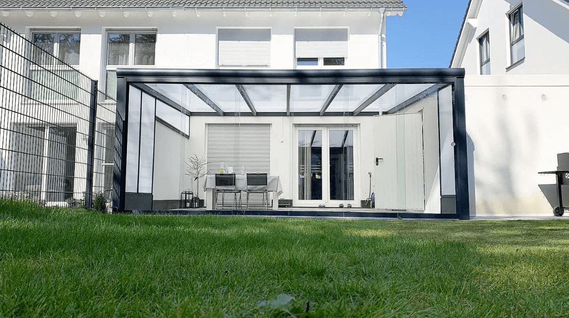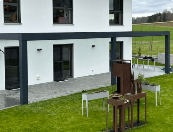 Juist door de hoge kwaliteit van onze materialen en de bijzonder stevige constructie van onze zelf geproduceerde overkappingen, zijn minder staanders nodig dan bij onze concurrenten. Onze terrasoverkappingen bieden daardoor een vrij uitzicht en hebben een ruime doorgang onder de overkapping.