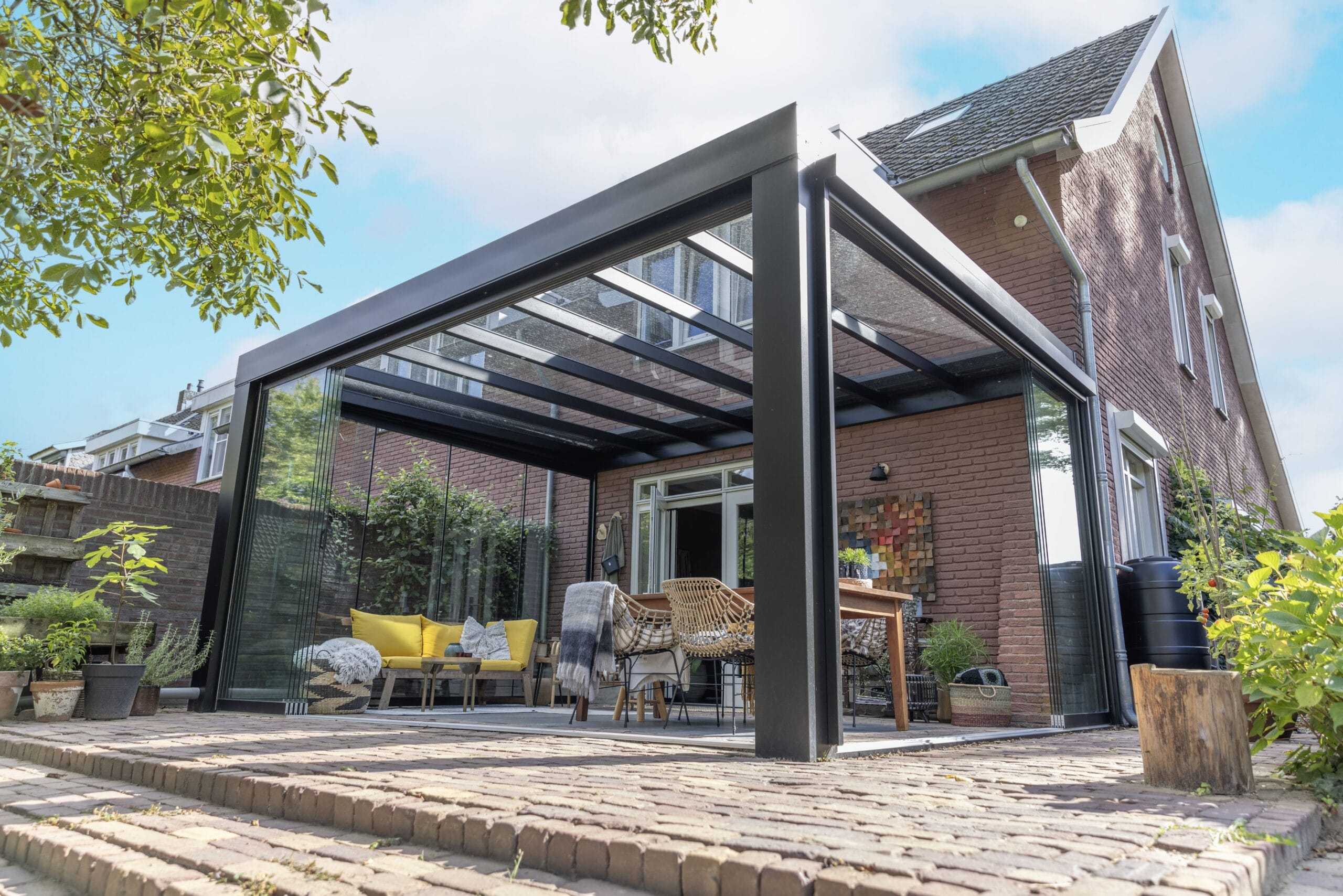 De Cube Grand wordt zelden alleen als overkapping gebruikt. Door het toevoegen van glazen schuifwanden ontstaat een ruimte die het hele jaar door gebruikt kan worden. Een plek waar u zit, werkt, ontspant en samenkomt. Beschut wanneer nodig, open wanneer het kan. Precies zoals u het wilt.