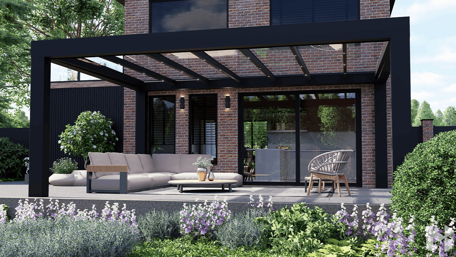 De kleurkeuze bepaalt hoe de veranda zich verhoudt tot uw woning en tuin. U kunt kiezen uit zwart of antraciet. Donkere kleuren versterken het moderne karakter en geven een krachtige uitstraling. Welke keuze u ook maakt, de Cube Grand behoudt altijd zijn luxe en evenwichtige uitstraling.